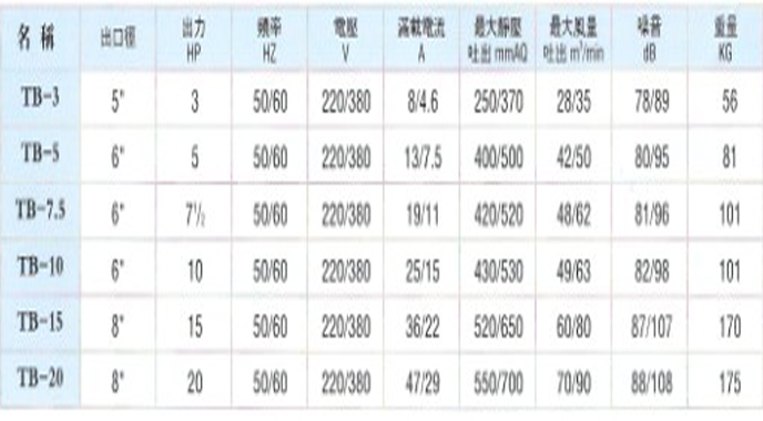 - 产品型号: TB透浦式鼓风机